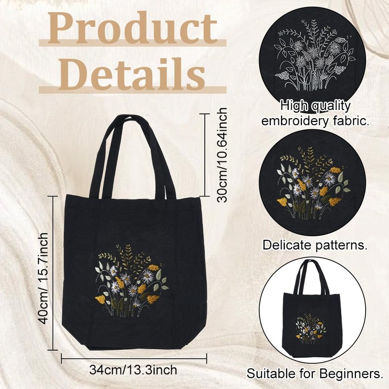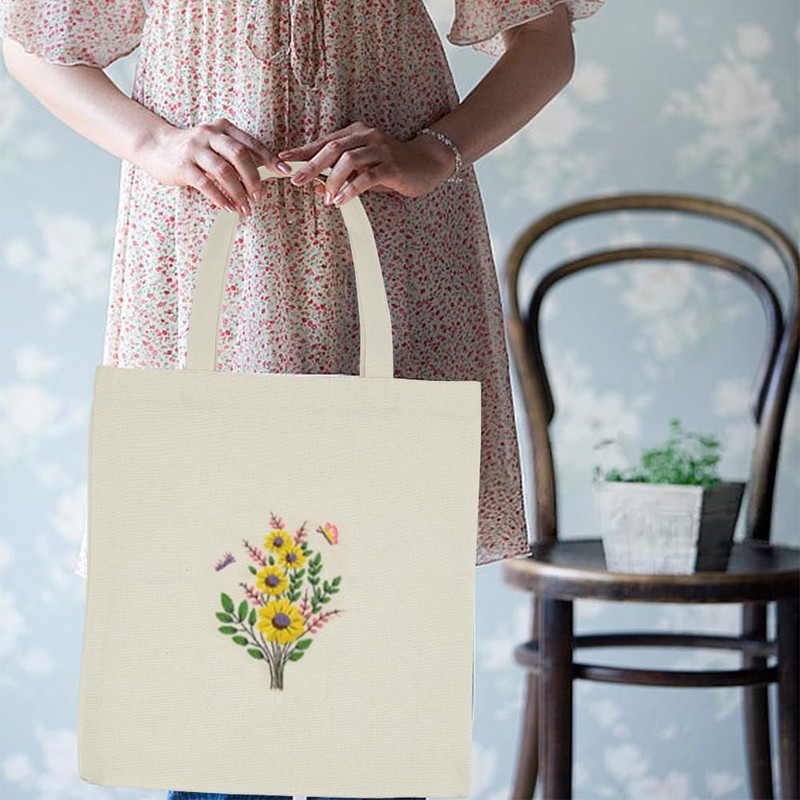 - Functional and Fashionable Handle Bag Kit: The exquisite daisy pattern and design make our bag unique. The finished canvas bag can be used for daily as a work bag, grocery bag, shopping bag, travel bag, etc.