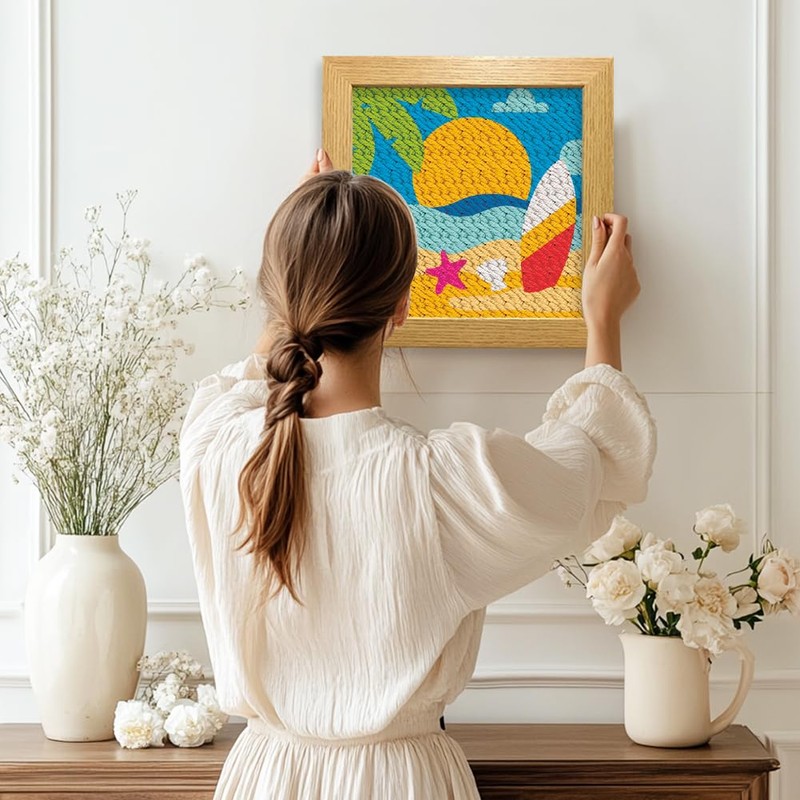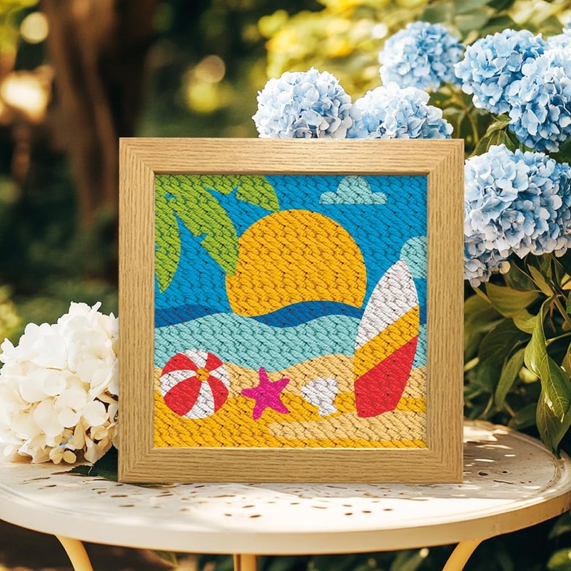 - Package Includes: You will receive 2 Summer Beach theme Punch Needle Sets, each set with 24x24cm frames, pre-printed fabrics, threads, tools and instructions. Enough accessories for your crafting needs!