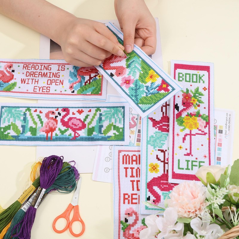 - Flamingo Cross Stitch Bookmark: The 6 pcs cross-stitch bookmarks are designed with vivid and lovely flamingos, flowers and reading quotes, the rich colors and attractive patterns make the cross stitch bookmark kit more beautiful and exquisite.