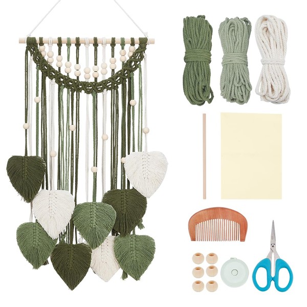 - Package Includes:You will receive 1 x Wooden Stick(30cm), 1 x 3mm Beige Cotton Thread (20m), 1 x 3mm Military Green Cotton Thread (30m), 1 x 3mm Avocado green Thread (20m), 40 x Wood Round Beads, 5 x A5 double-sided adhesive tape, 1 x Scissors, 1 x Wooden Comb, 1 x Tape measure, all DIY Leaves wall hanging accessories are placed in an storage box for easy storage and carrying. This kit is rich in accessories, enough to make your own leaves wall hanging.