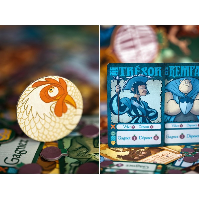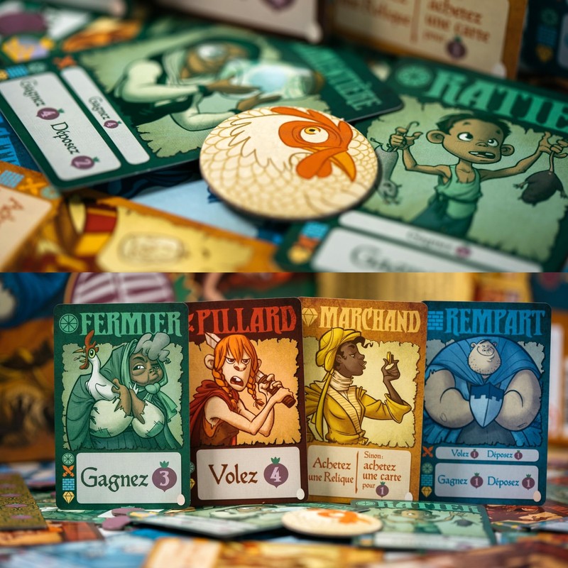 - LE JEU -- Avec les mêmes villageois que les autres joueurs, vous allez devoir faire la différence et jouer habilement contre vos voisins de table. Le Paysan récolte des navets, le Pillard vole le Paysan et le Marchand, le Rempart protège du Pillard et le marchand recrute ou achète des reliques. Au cours de la partie, vous pourrez recruter de nouveaux villageois pour profiter d’effets plus puissants