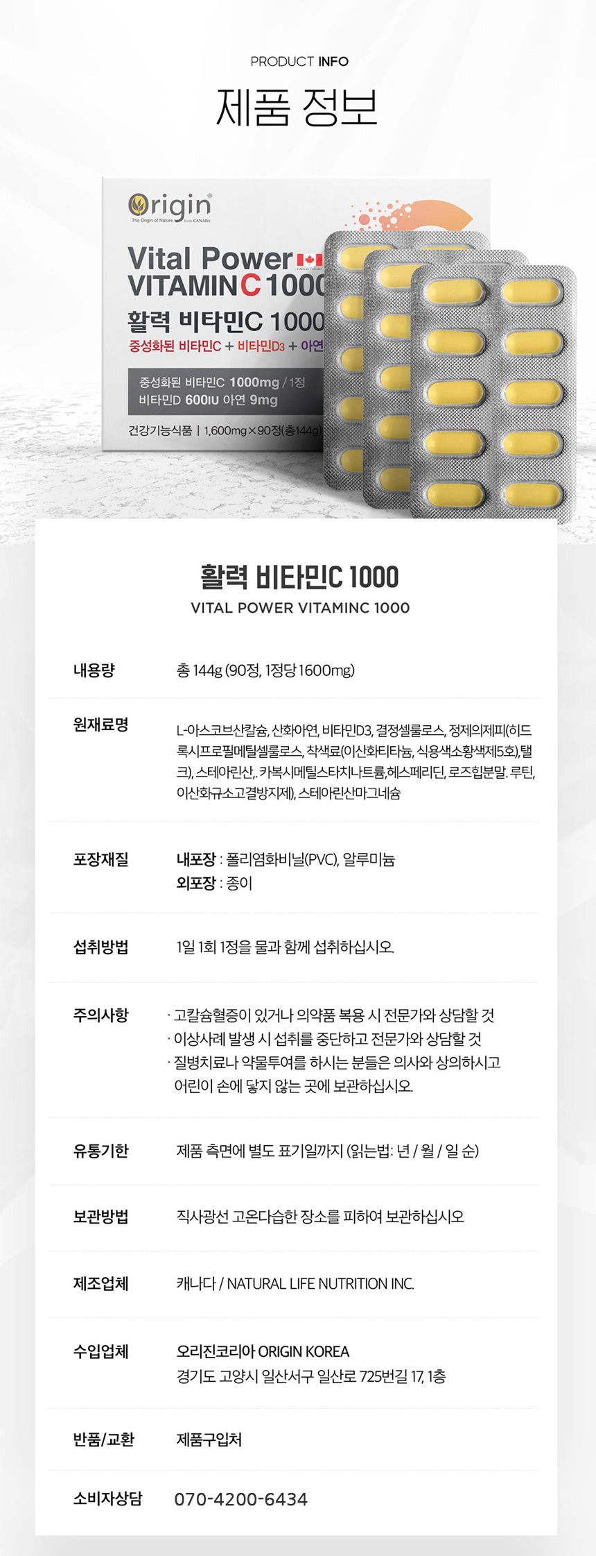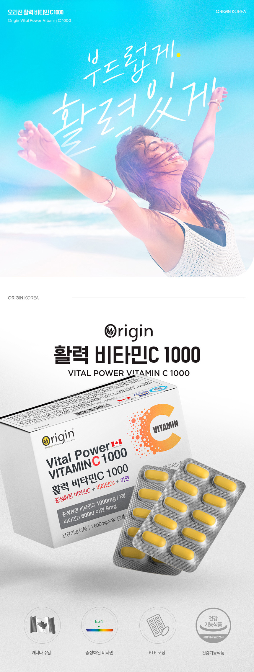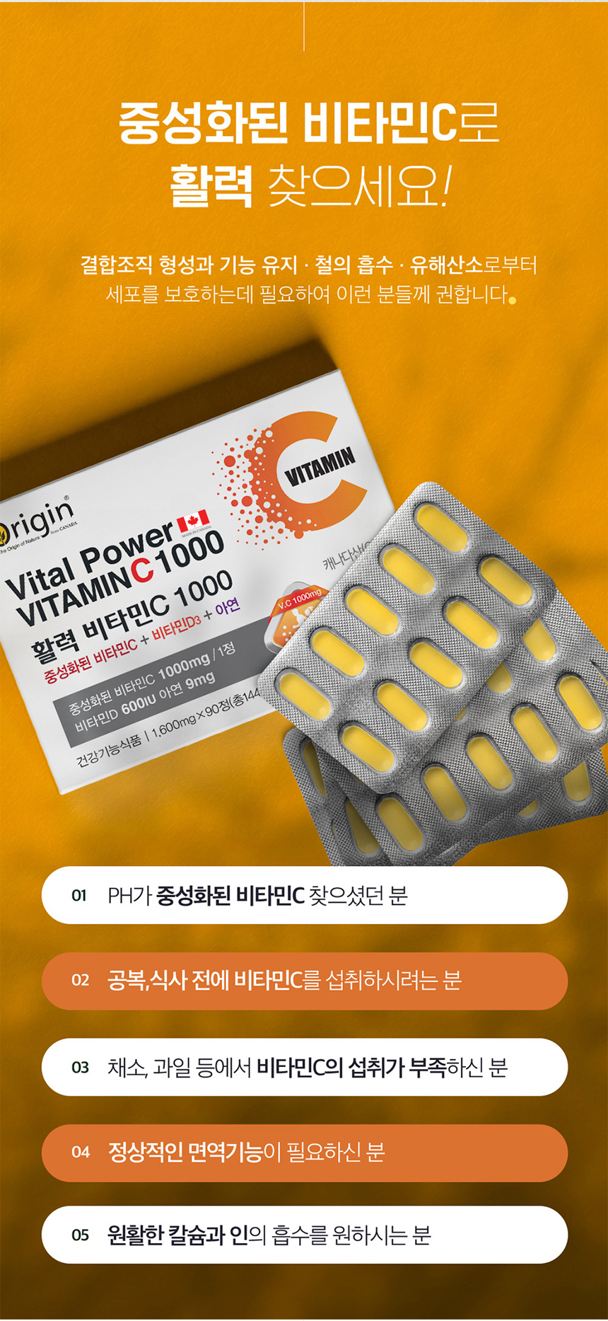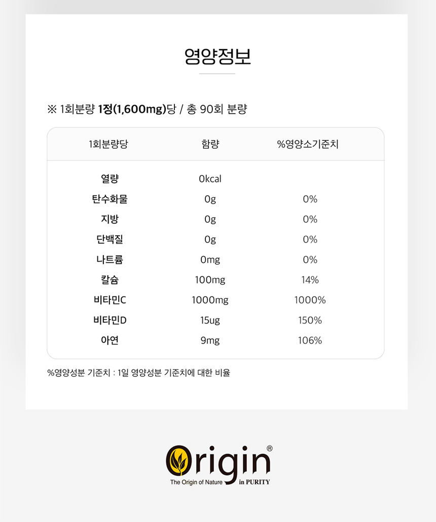 Origin PH Neutralizing Vitality Vitamin C 1000 (1600mg x 90 Tablets)