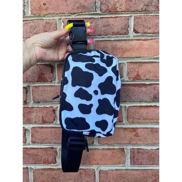 Original 50" Long Strap Iris Crossbody Bag:_Moo print (black/white)