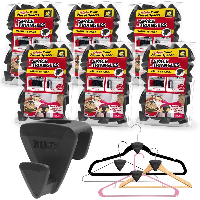 - Create more closet space: cramped, cluttered closets make it impossible to find what you need. RUBY Space Triangles vertically hang items, creating up to 3X more closet space! Plus, a cramped closet means wrinkled clothes not anymore.