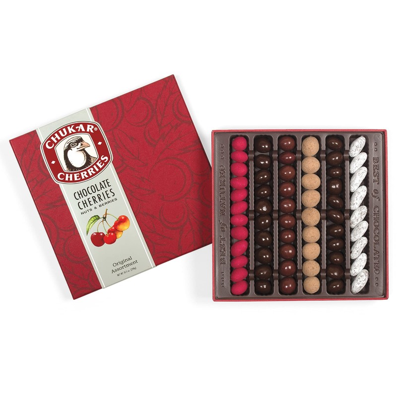 - Hands down our best seller filled with 6 of Chukar's most loved chocolate cherries & nuts in a gift box that's easy to pack or ship.