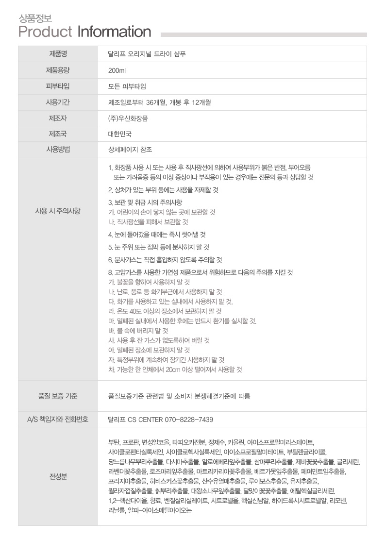 Original Dry Shampoo 200ml / 오리지널 드라이 샴푸 200ml