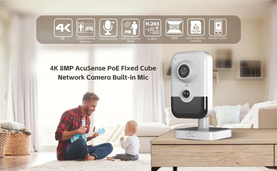 HIK 8MP 4K Fixed Cube PoE IP Camera built-in Microphone