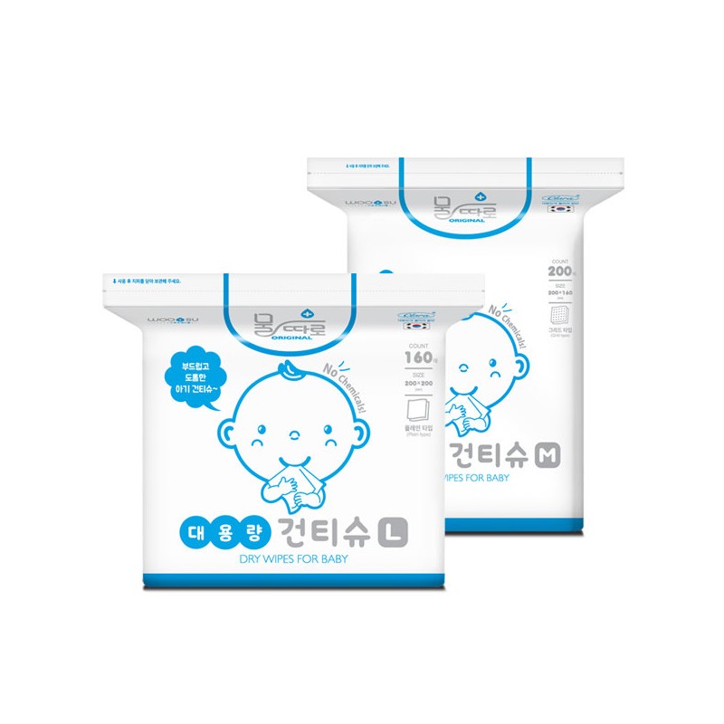 Original large capacity dry tissue 800 sheets/640 sheets, L (200mmx200mm) / 160 sheets x 4 packs / 물따로 오리지날 대용량 건티슈 800매/640매, L (200mmx200mm) / 160매x4팩