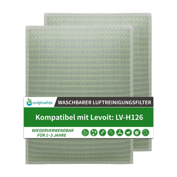Original Life Washable Replacement Filter for Levoit LV-H126 Air Purifier, Compatible with Levoit Air Purifier LV-H126, 2 Pieces in 1 Set