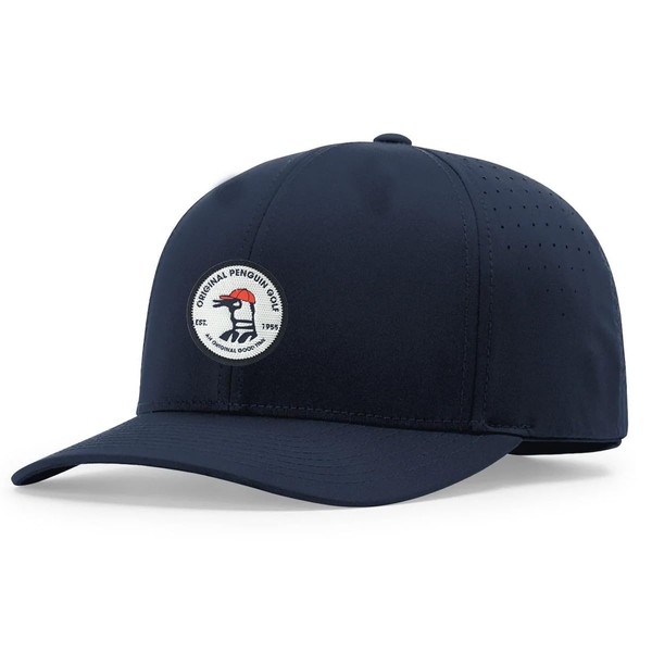 Original Penguin Golf Pete in a Hat Logo Patch Perforated Adjustable Strapback Hat (US, Alpha, One Size, Black Iris)