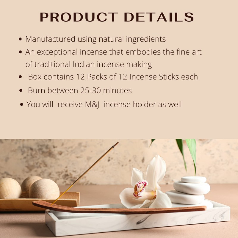 - The pack contains full box (12 x 15g) of incense sticks and comes with M&J incense sticks holder