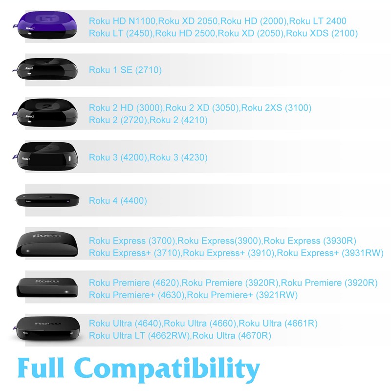 - Compatible with Roku 1, Roku 2 XD, XS, HD, LT, Roku 3, Roku 4, Roku Express Premiere Ultra