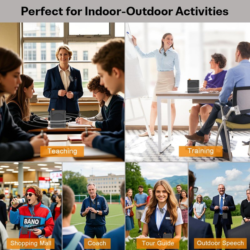 - Voice Amplifier for Teachers: End Voice Strain in Classrooms – Ideal for teachers, professors, and coaches in classrooms, lectures, and fitness classes. Eliminate voice strain and bulky microphones with our wireless voice amplifier — lightweight, portable, and perfect for seamless speaking with dual-microphone system.