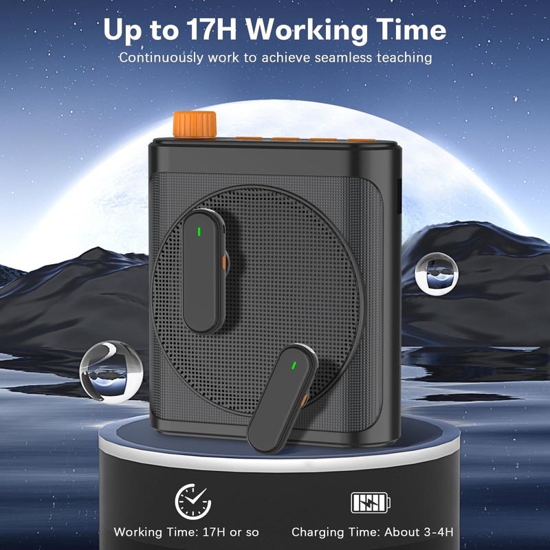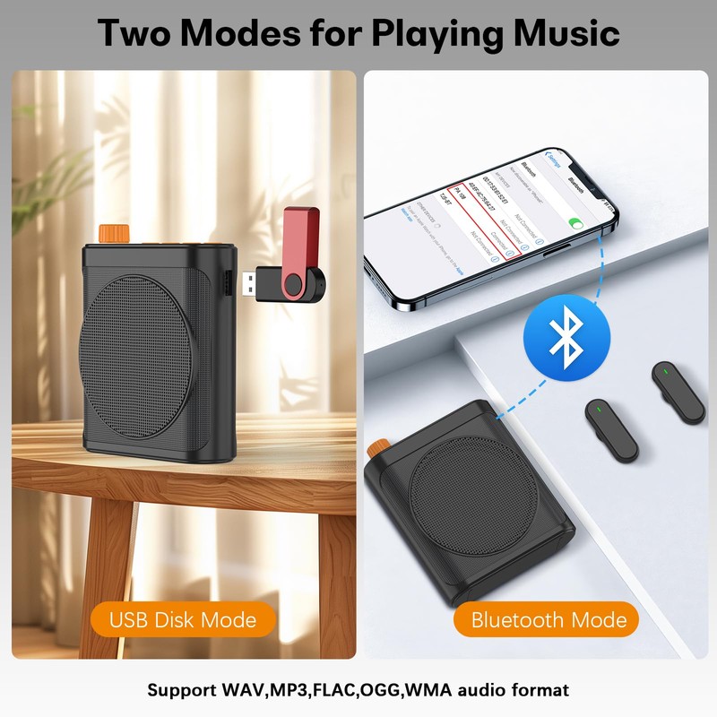 - Wireless Voice Amplifier for Team Sharing & Bluetooth: Dual wireless microphones for presenters and hosts. Stream audio via Bluetooth in classrooms, fitness studios, or live events — portable, rechargeable voice amplifier for group collaboration.