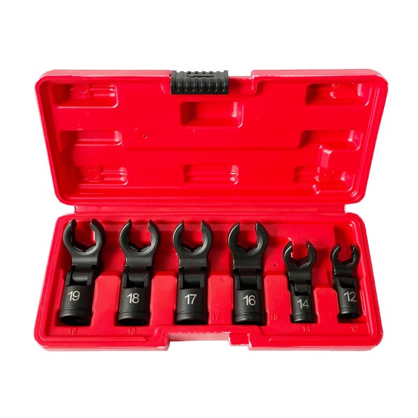 ORIGINTECH Flex Head Crows Foot Line Wrench Set, 3/8" & 1/2" Drive Flex Flare Nut Wrench Injector Fuel Line Crowfoot Flare Nut Socket Wrench, Size 12 14 16 17 18 19 MM