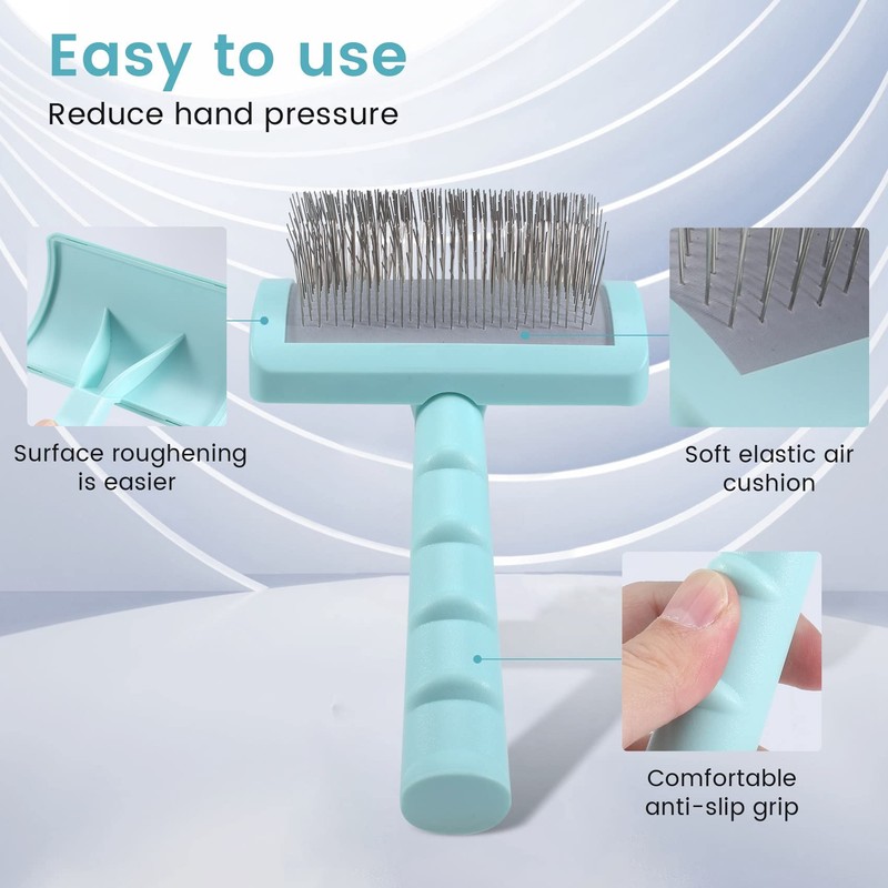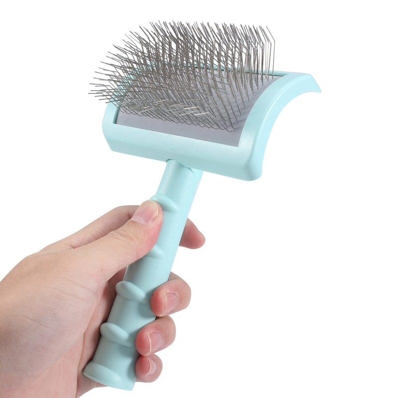 - Slicker Brush - Made for professional ,25mm(1 inch) long stainless steel pin and 135° curved pins brush,which more fit to the area of pet hair.Soft stainless-steel pins that gently brush loose hair, undercoat, mats, and tangles.Designed with larger than standard pins to grasp hair and save time and energy during pet grooming