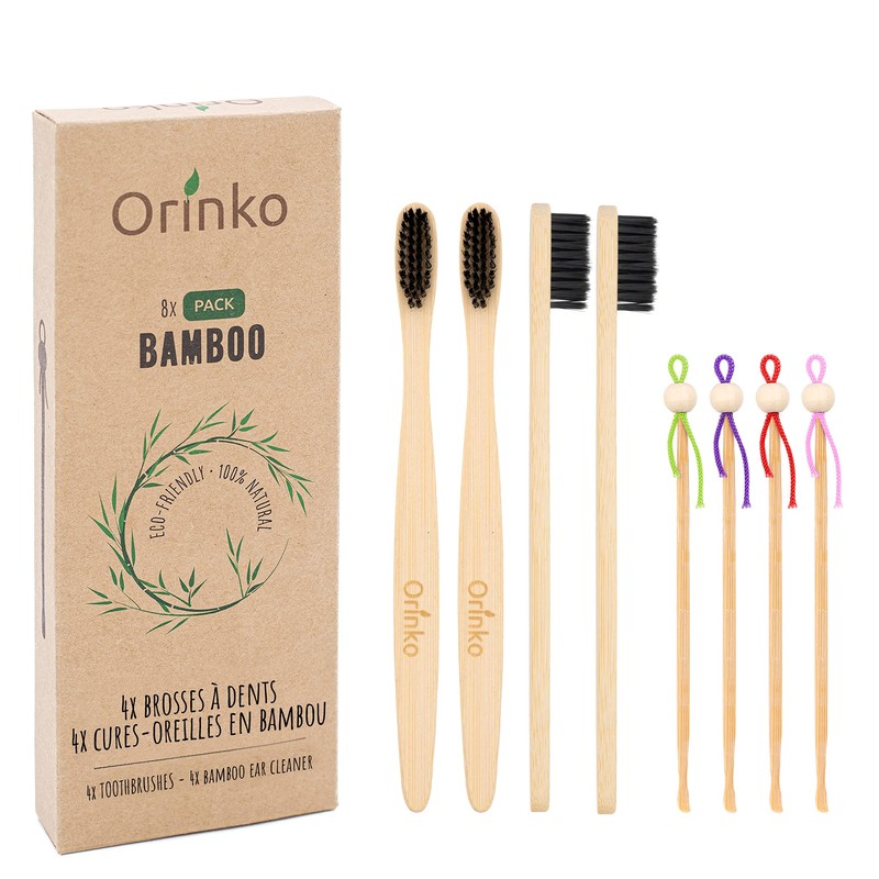 orinko Set of 4 toothbrushes + 4 bamboo toothbrushes