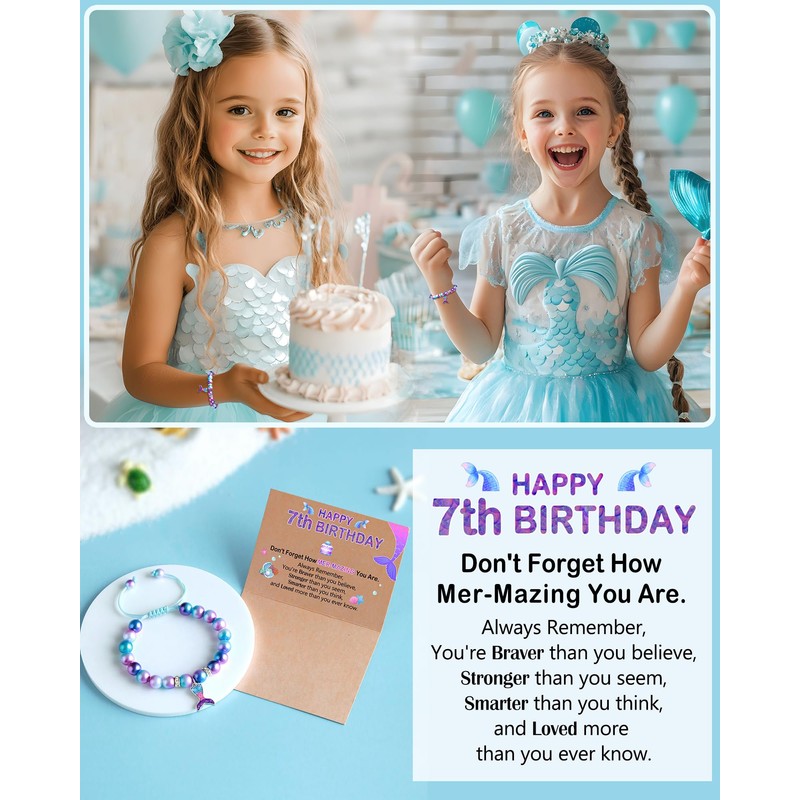 - 【Mermaid Birthday Bracelet】 Don't Forget How MER-MAZING You Are. The bracelet features a beautifully crafted mermaid charm, capturing the magic and wonder of the ocean, nice for a little one who loves mermaids
