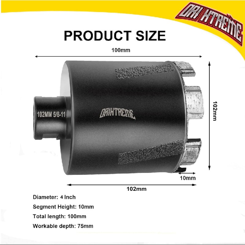 ORIXTREME Diamond Core Drill Bits 4Inch Granite Hole Saw for Dry Drilling Concrete Marble Stone with 5/8-11 Thread 102mm
