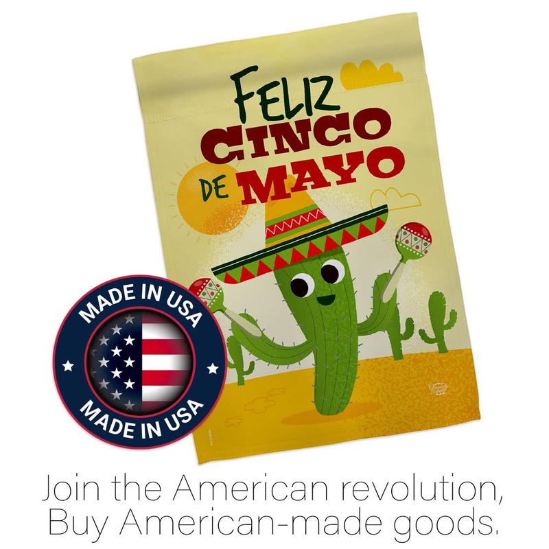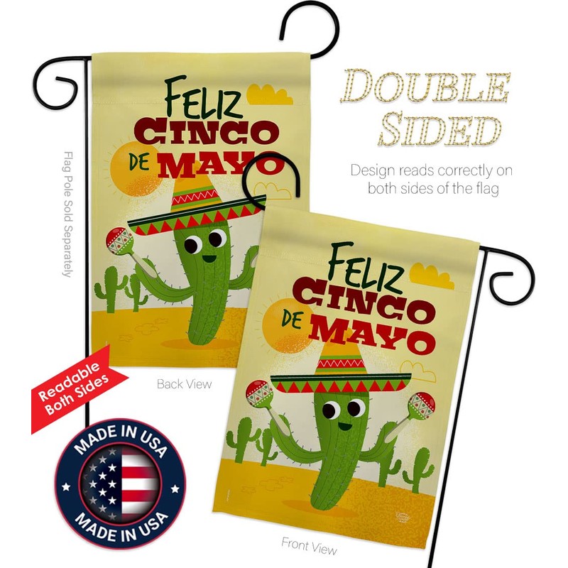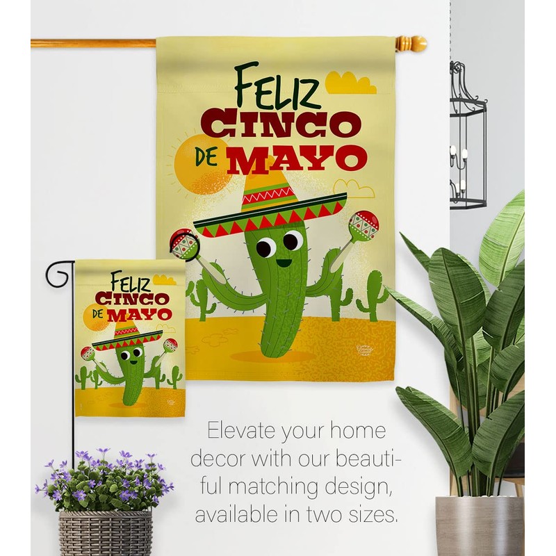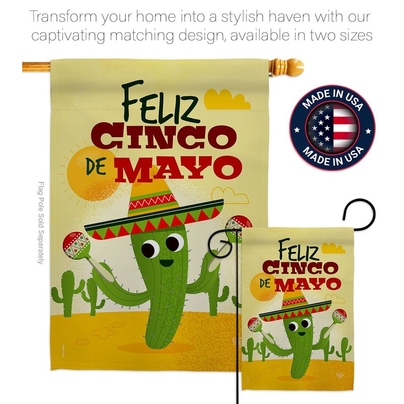 Ornament Collection Feliz Cinco de Mayo Garden Flag Set Dowel Summer Party Cactus Pinata Sombrero Mexican Fiesta Outdoor House Decoration Banner Small Yard Gift Double-Sided, Made in USA