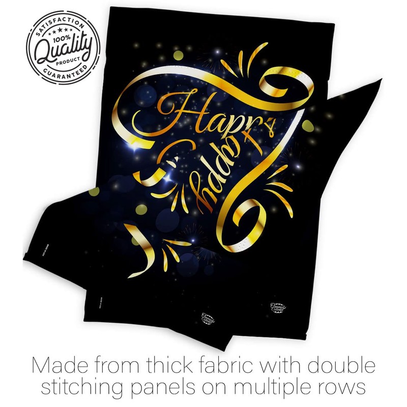 Ornament Collection Gold Happy New Year Garden House Flag Set Winter Clock Countdown Champagne Party Fireworks Celebrate Decoration Banner Small Yard Gift Double-Sided, Made in USA