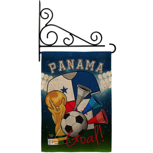 Ornament Collection GS192104-DB-03 World Cup Panama Soccer Burlap Interests Sports Impressions Decorative Vertical 13" x 18.5" Double Sided Garden Flag Set Metal Fansy Wall Bracket Hardware