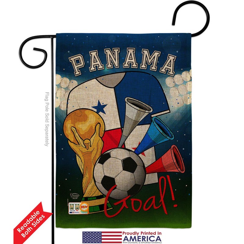 Ornament Collection GS192104-DB-03 World Cup Panama Soccer Burlap Interests Sports Impressions Decorative Vertical 13" x 18.5" Double Sided Garden Flag Set Metal Fansy Wall Bracket Hardware