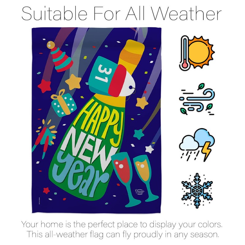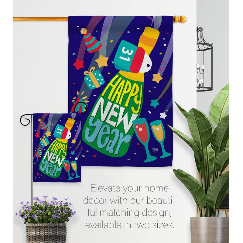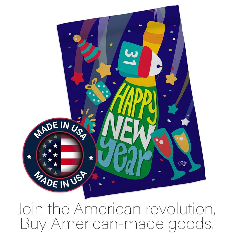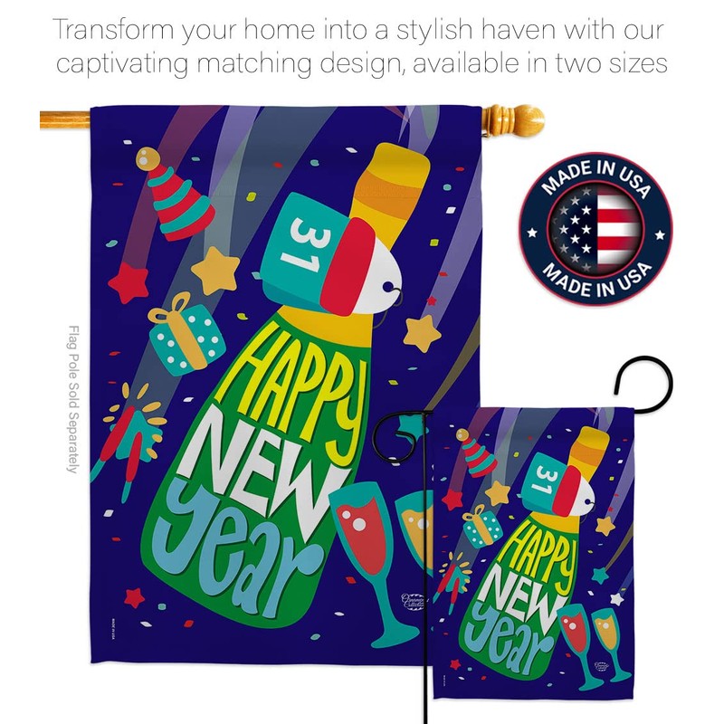 Ornament Collection New Year Garden Flag Set with Stand Winter Clock Countdown Champagne Party Fireworks Celebrate House Decoration Banner Small Yard Gift Double-Sided, Made in USA