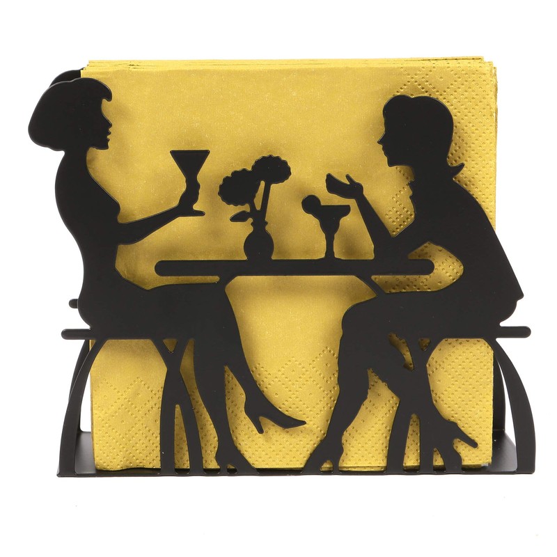 - STYLISH DESIGN: Modern napkin holder with an eye-catching design that shows people dining at a table