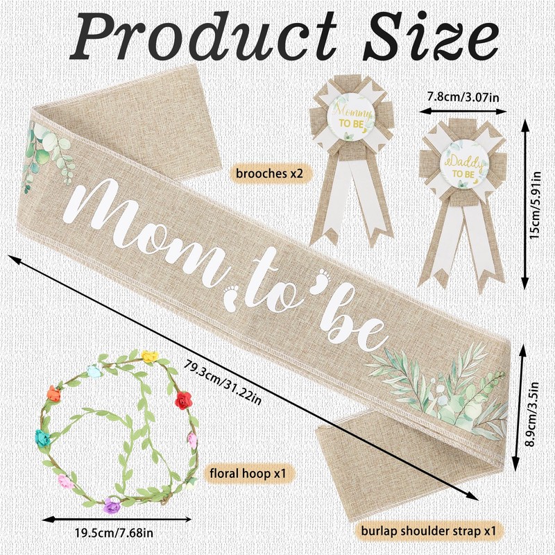 💖 Celebrate the arrival of a new baby and shine with happiness in every moment. Easily upgrade your baby shower with our sash, badge pin and flower crown sets to make the day filled with love and laughter!