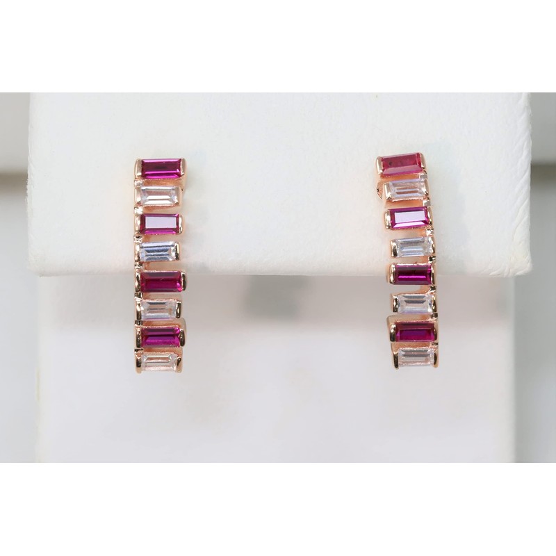 Oro Leoni 925 Sterling Silver Lab Created Ruby Vertical Bar Earrings Rose Gold Plated