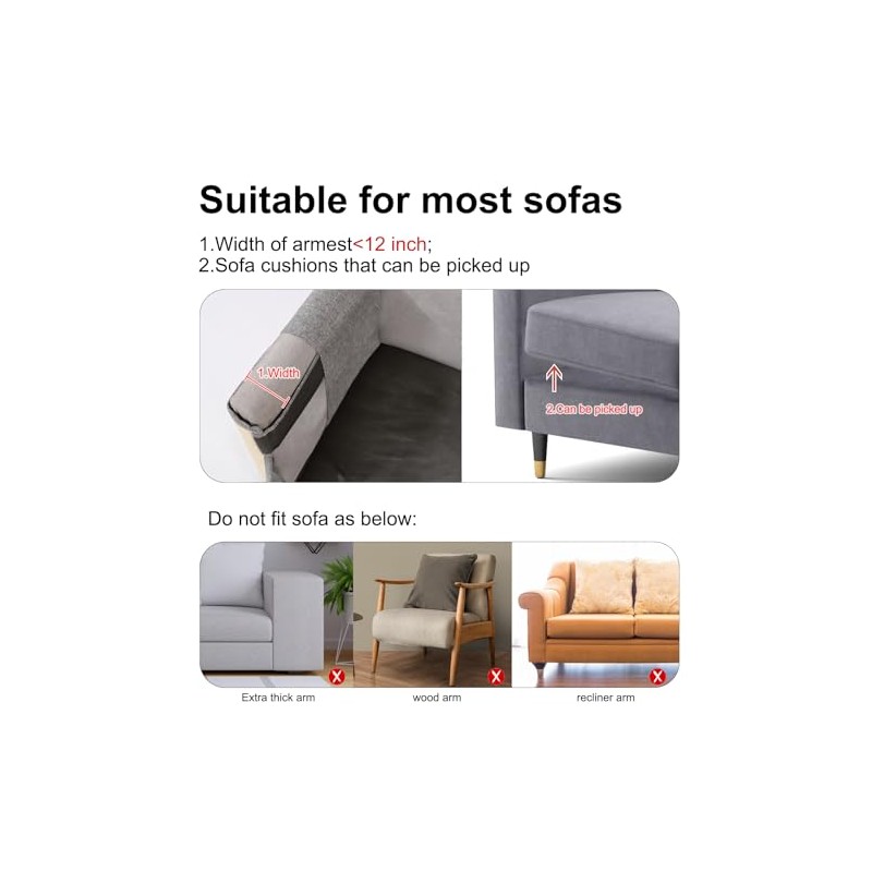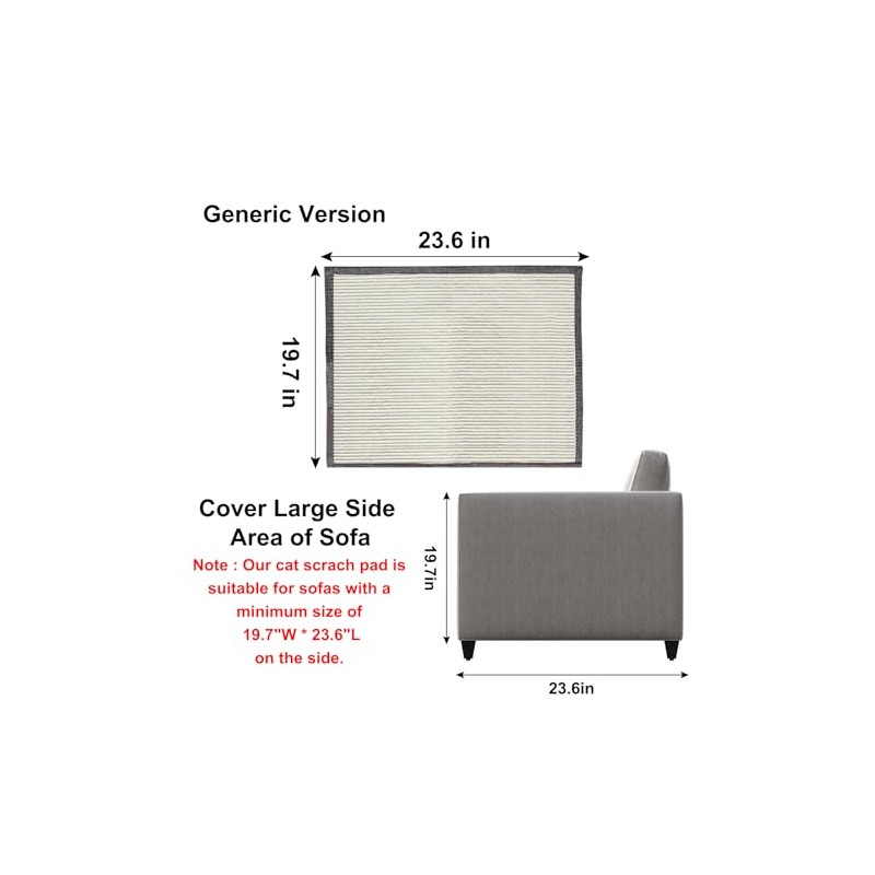 - Installation ConditionFor our cat scratch couch protector is not for every type sofa,please ensure if your sofa can use it before you place the order.To apply the protector of sofa, meet three conditions:1.The sofa can use leg ties; 2.Thickness of sofa armrest is within 12 inches as picture show;3.The side area of sofa is at least 19.7'W*23.6'W.It really fit only a certain type of couch.