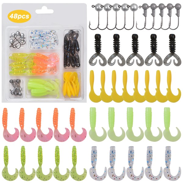 OROOTL 48pcs Soft Fishing Lures Jig Head Hooks Set.