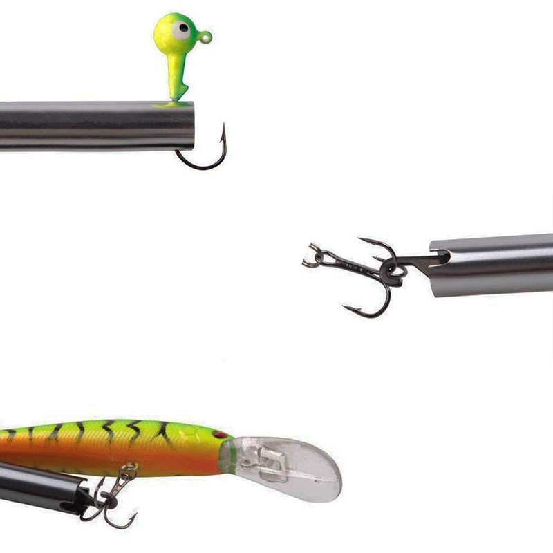 - 🐟 LESS HARM: This fishing hook extractor can remove deeply swallowed hooks, take out hooks as quickly and as gently as possible to decrease the death rate, while prevent cuts and punctures to your fingertips.