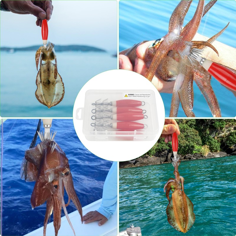 - 🐟【QUANTITY】5pcs/10pcs glow squid jig hooks. Ideal for Catching Fish Like Sleeve-fish, Squid, Octopus and Cuttlefish in saltwater.