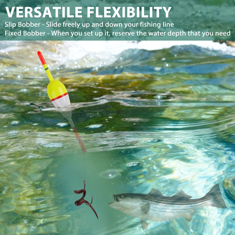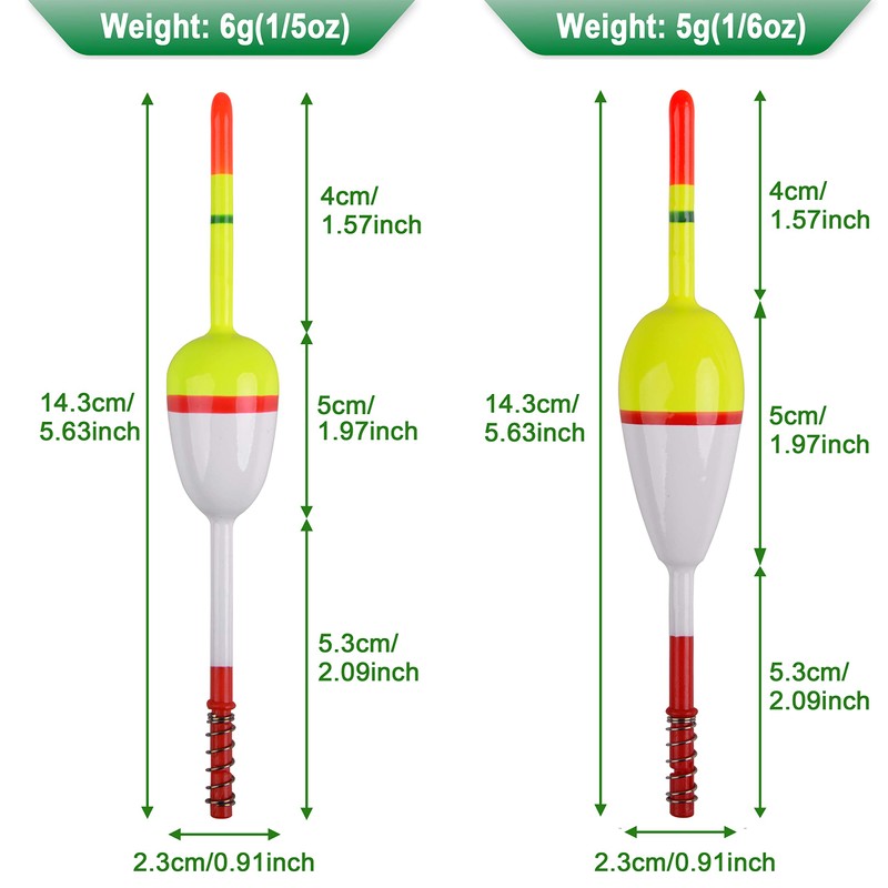 - 🐟【Durable & Reliable】Made of high quality balsa wood, our slip float bobbers for fishing are durable break and chip resistant finish. The spring is strong, corrosion resistance and rust resistance, durable and practical for using a long time.