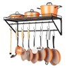 - Simple and Stylish Design - Storage shelf + 2 tier cross bars, mounted on wall to store pans, pots, spice jars and bakeware in an organized way. Simple and thoughtful design to show a stylish kitchen, suitable for any decoration styles in kitchen.