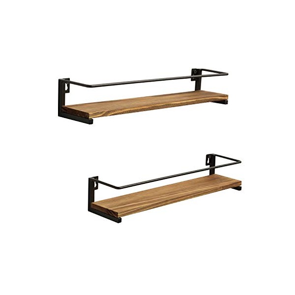 OROPY Spice Rack Wall Mounted, Rustic Wood Hanging Spice Rack over the Stove, Kitchen Wall Spice Rack, 2 Pack
