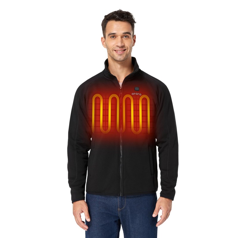 ORORO Men’s Heated Fleece Jacket with Battery, Fleece Heating Jacket (Charger Not Included) (Black, L)