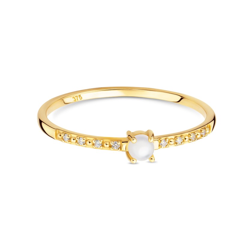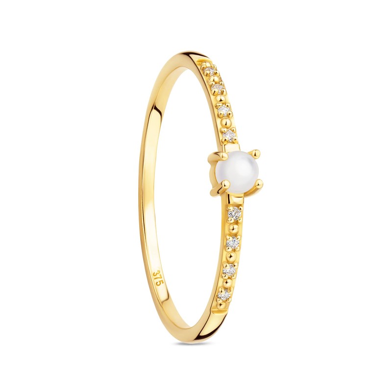 - Material: 9 carat (375) yellow gold, total weight: 0.82 g, 8 diamonds 0.03 ct., mother of pearl 0.17 ct., size 50