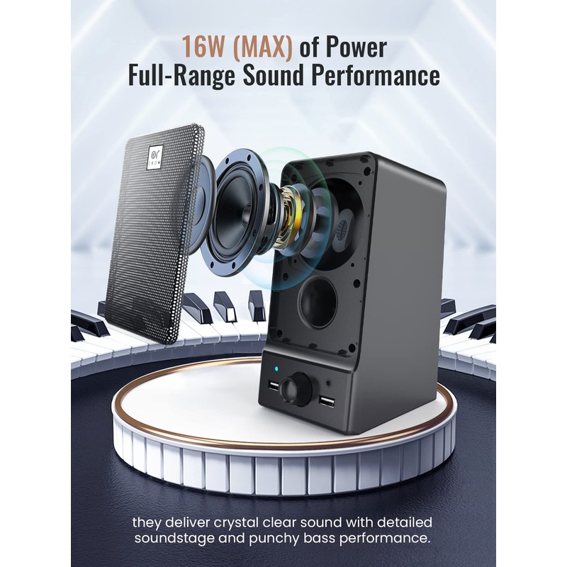 OROW Computer Speakers,Hi-Fi Stereo USB Speakers for PC,16W Desktop Speaker,Built-in DSP Sound Chip, Deep Bass&Pure Vocal,Laptop Speakers with Headphone Jack(S203)