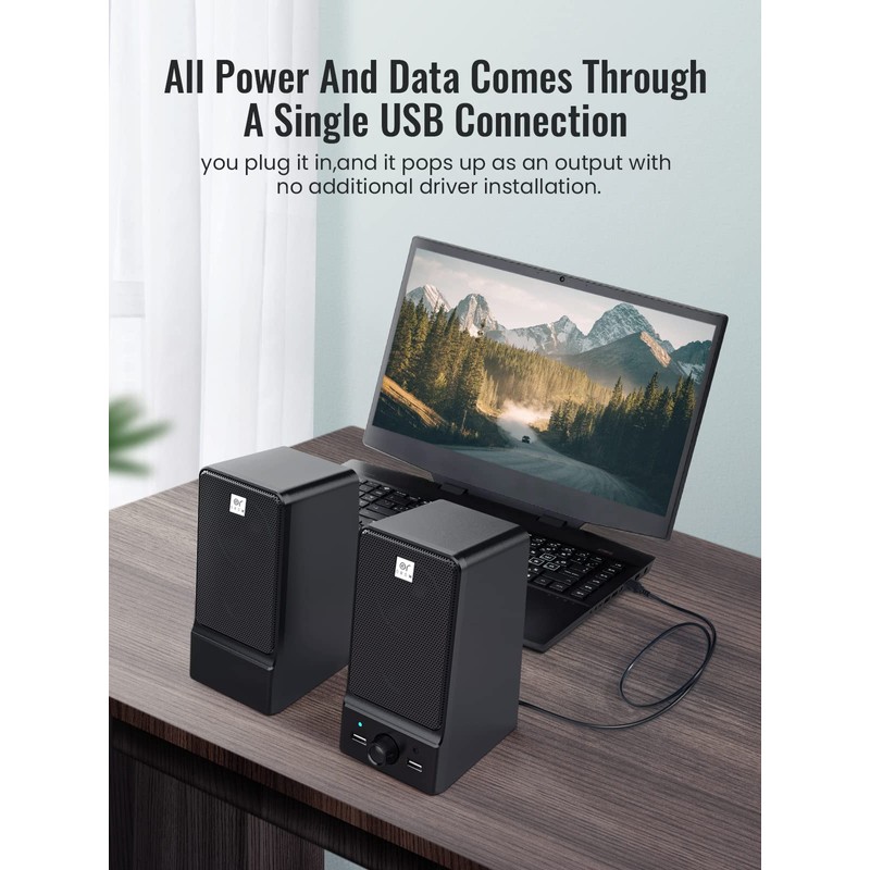 - 🚀【INTERFERENCE-PROOF SINGLE USB CABLE】The single USB cable can supply both audio and electrical power to the USB computer speaker.Totally plug and play, no configuration at all.and long enough cord to connect to each other and the laptop.