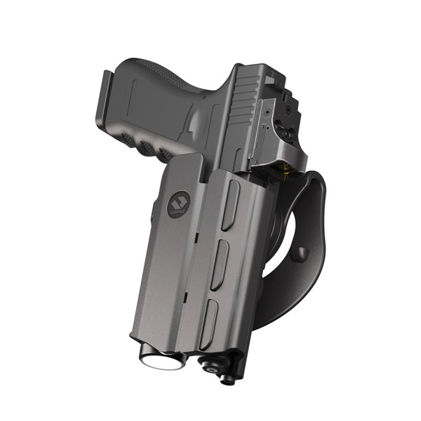Compatible with variety of pistols with mounted pistol lights, sights, & optics.