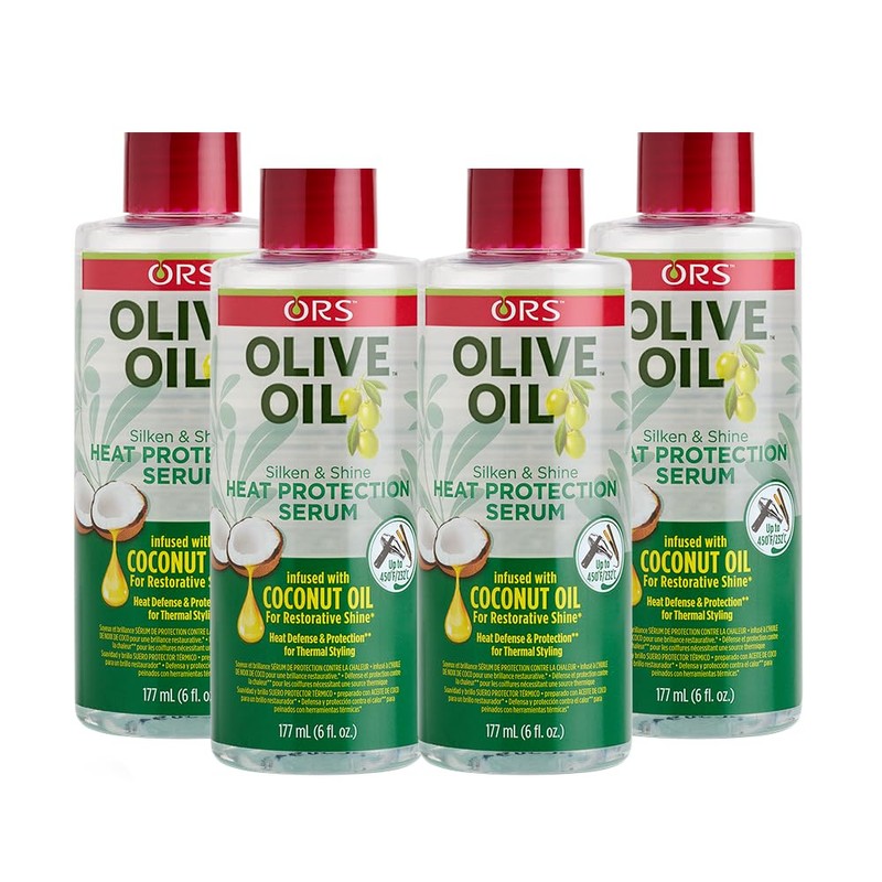 ORS Olive Oil Heat Protection Hair Serum infused with Coconut Oil for Restorative Shine 6.0 Ounce (Pack of 4)
