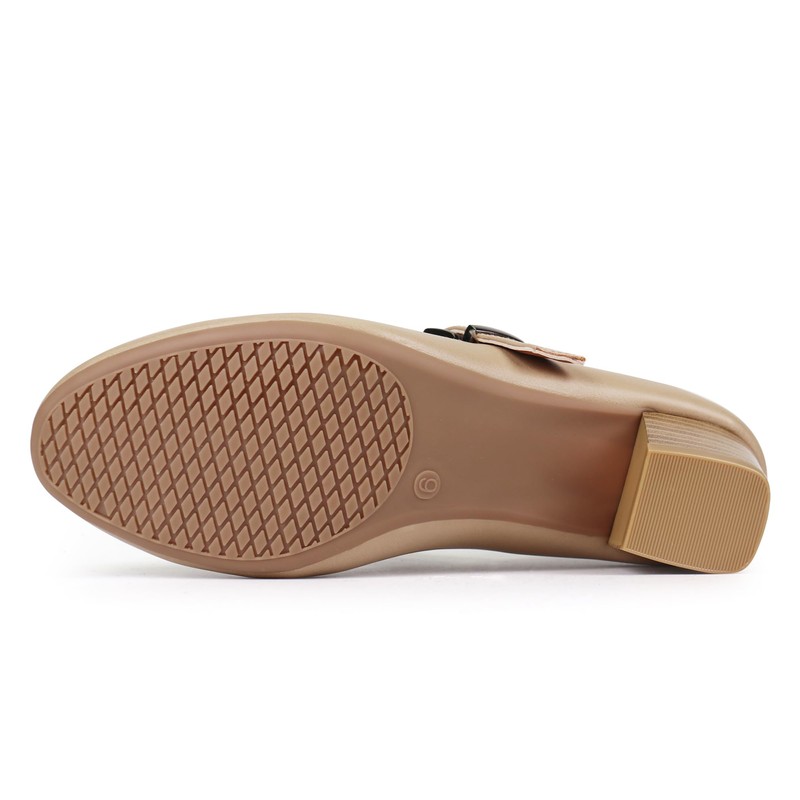 Ortho+rest Women Mary Janes Heels for Bunions Chunky Low Heels Court Shoes (6.5,Beige