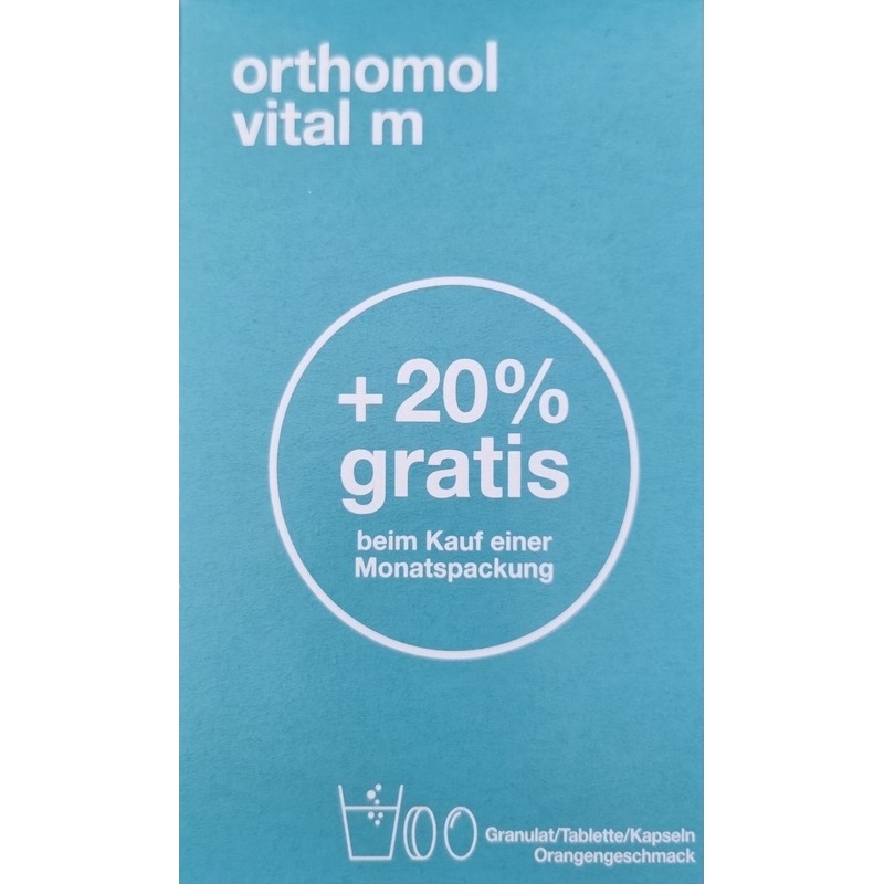 Orthomol Vital M Granules/Tab/Cap Orange is a nutritional supplement for men with important micronutrients for the nervous system and the energy-yielding metabolism.