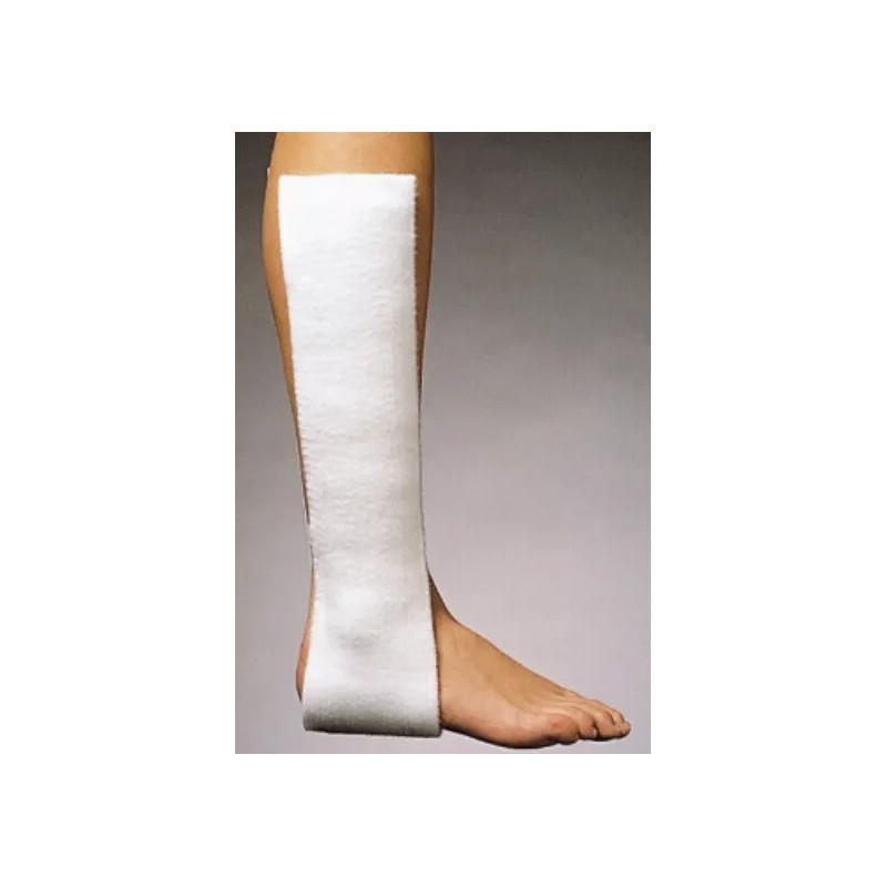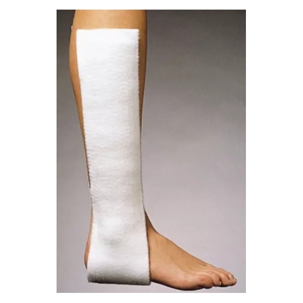 Everything you need in a splint kit to make a Stirrup U-Shape Sprained Ankle Splint. Our OrthoTape Padded Synthetic Pre-Cut Splint material is a unique quick-setting splint system that already has the padding built-in. No need to add extra padding or stockinette to make the splint. Simply remove from the pouch, wet, trim, and form around the patient's limb. Then apply our self-adhesive bandages included with your kit to hold the splint in place. Allow 5-7 minutes for the splint to set and solidify.