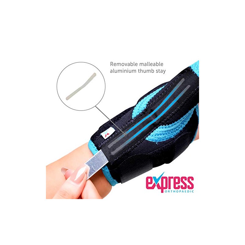 - Easy to fasten - elastic lycra and velcro fastening situated on top of hand, also incorporates a malleable aluminium thumb stay