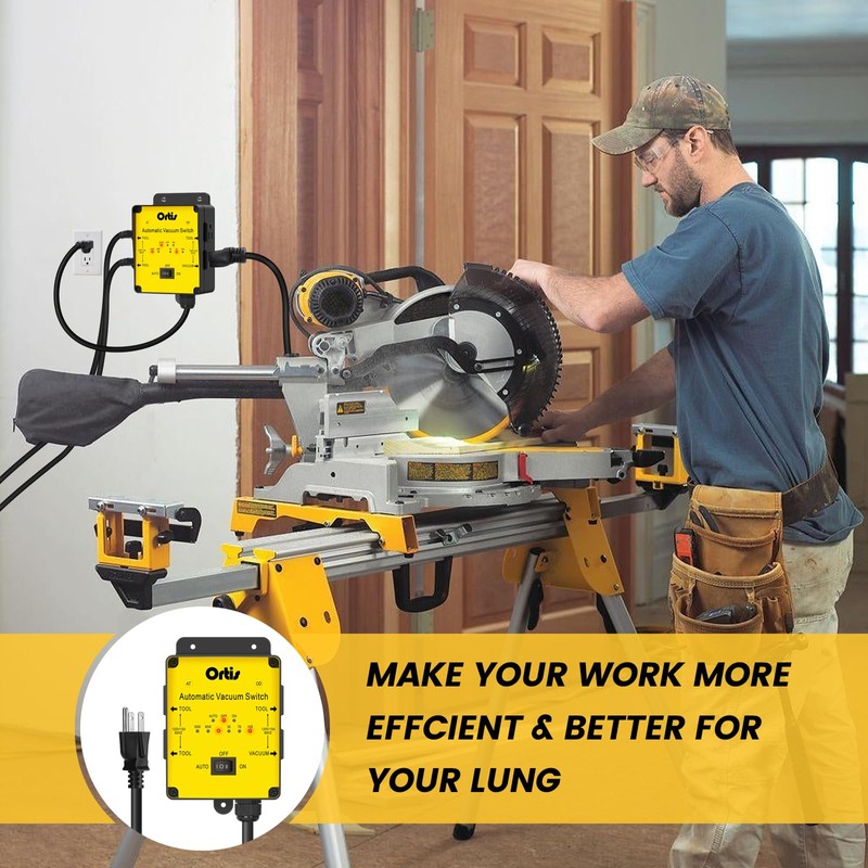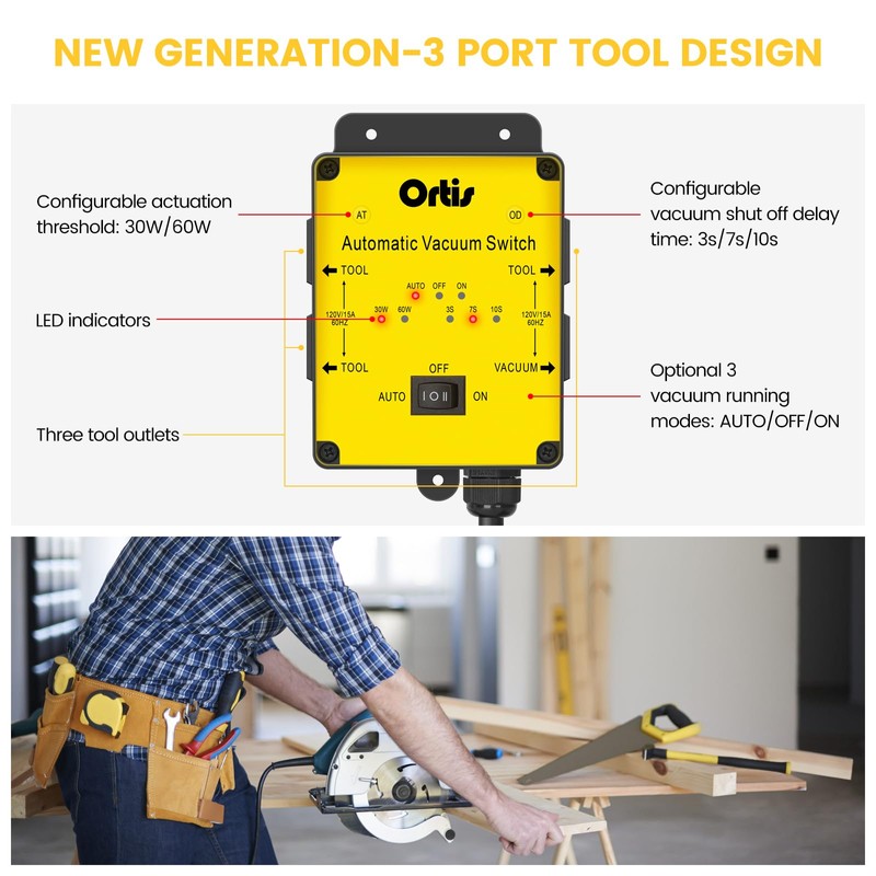 Ortis 2025 New! Automatic Vacuum Switch, Ortis Dust Control Autoswitch for 3 Power Tools, Delay Vacuum On/Off to Prevent Circuit Overload and Tripping, Adjustable Actuation Threshold