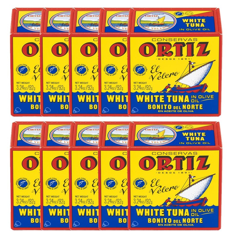 Ortiz White Tuna in Olive Oil, Fresh Tender Slices, Spanish Wild Caught Tuna, High in Protein and Omega 3 Fats, Excellent in Salad, Pasta or Sandwiches - No Need to Add Mayo, 3.24oz Can (Pack of 10)